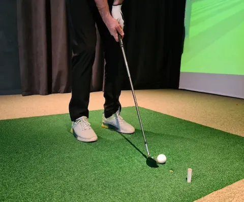 パターマット練習: パターマットに向かって、SW で転がしアプローチを練習します。室内でも十分な効果があります。