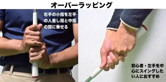インターロッキンググリップ 右手の小指と左手の人差し指を絡める握り方。タイガー・ウッズや松山英樹プロが使用。手が小さい人や握力が弱い人におすすめです。